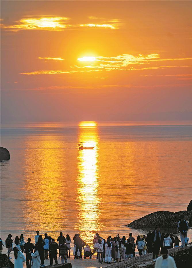 傍晚时分,夕阳西下,记者来到环岛路,海浪、椰子树、彩绘马路等元素,尽显海岛风情。清晨5时左右的黄厝沙滩,更是被网友称为“日出打卡胜地”。