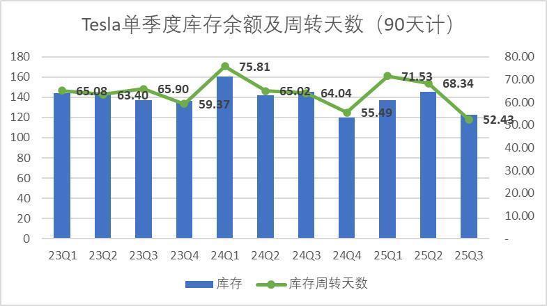 而集中交付消化了部分库存,三季度特斯拉整体的交付量超生产量大约4.5万台,整体的周转水平得到了明显改善。