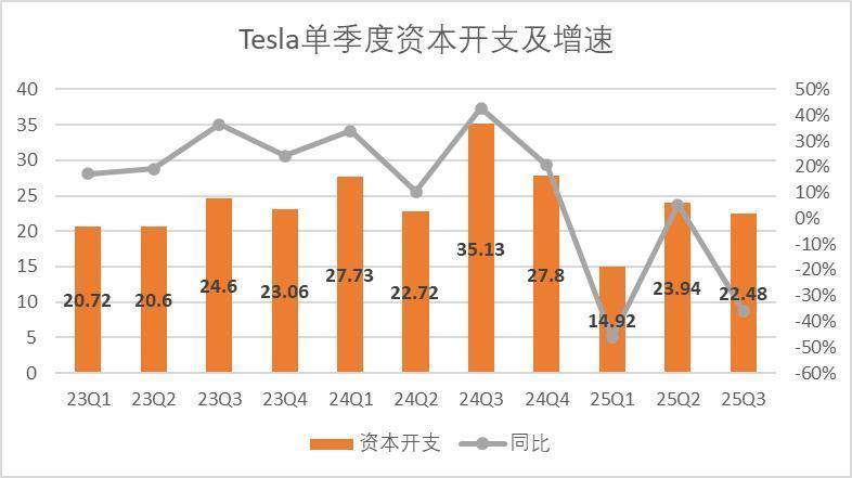 根据特斯拉的指引,全年的资本开支90亿,那么四季度资本开支将在29亿美元左右,四季度可能会出现正增速的情况。