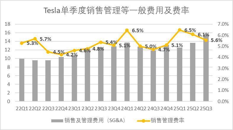 从费率也可以看出,三季度特斯拉的研发费用和销售管理费用分别录得16.3及15.6亿美元,均创单季度新高。但结合营收来看,整体的费率分别只有5.8%及5.6%,并不算高,并且销售费用端还有一笔2.4亿美元的重组一次性支出。