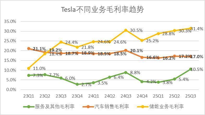 同时受益于储能和造车业务的营收增速,三季度服务业务的收入和利润水平也达到了相对高位,毛利水平也得到了修复。