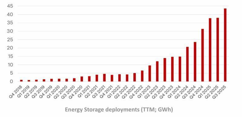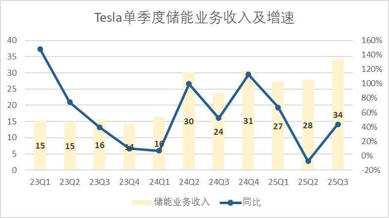 储能业务算是三季度特斯拉为数不多预期外的亮点,三季度营收录得34.15亿美元,创单季度新高,同比增长44%。
